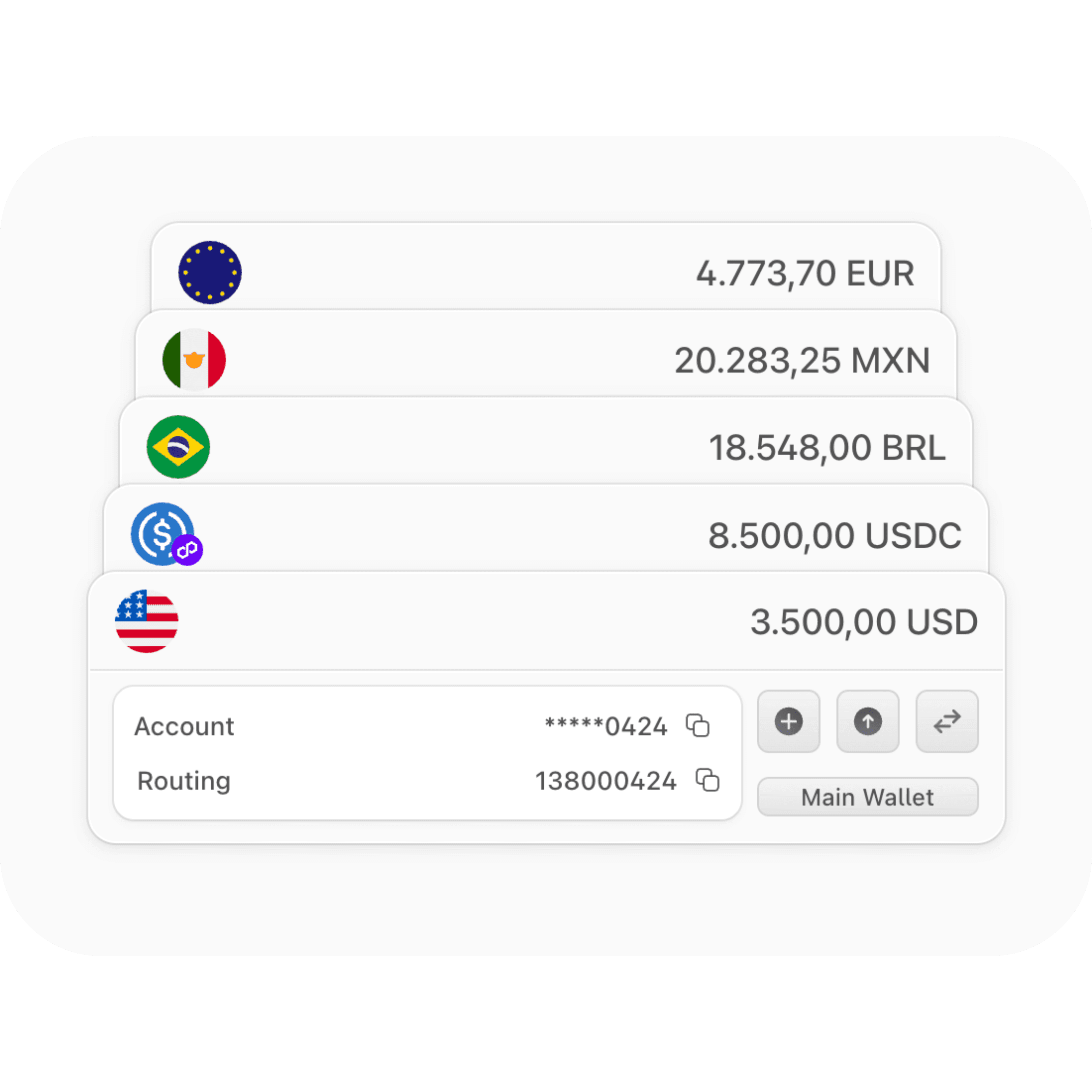 Mova o seus ativos para o Real Brasileiro (BRL) com liquidação instantânea, conformidade total e taxas de câmbio competitivas por meio de uma API unica.